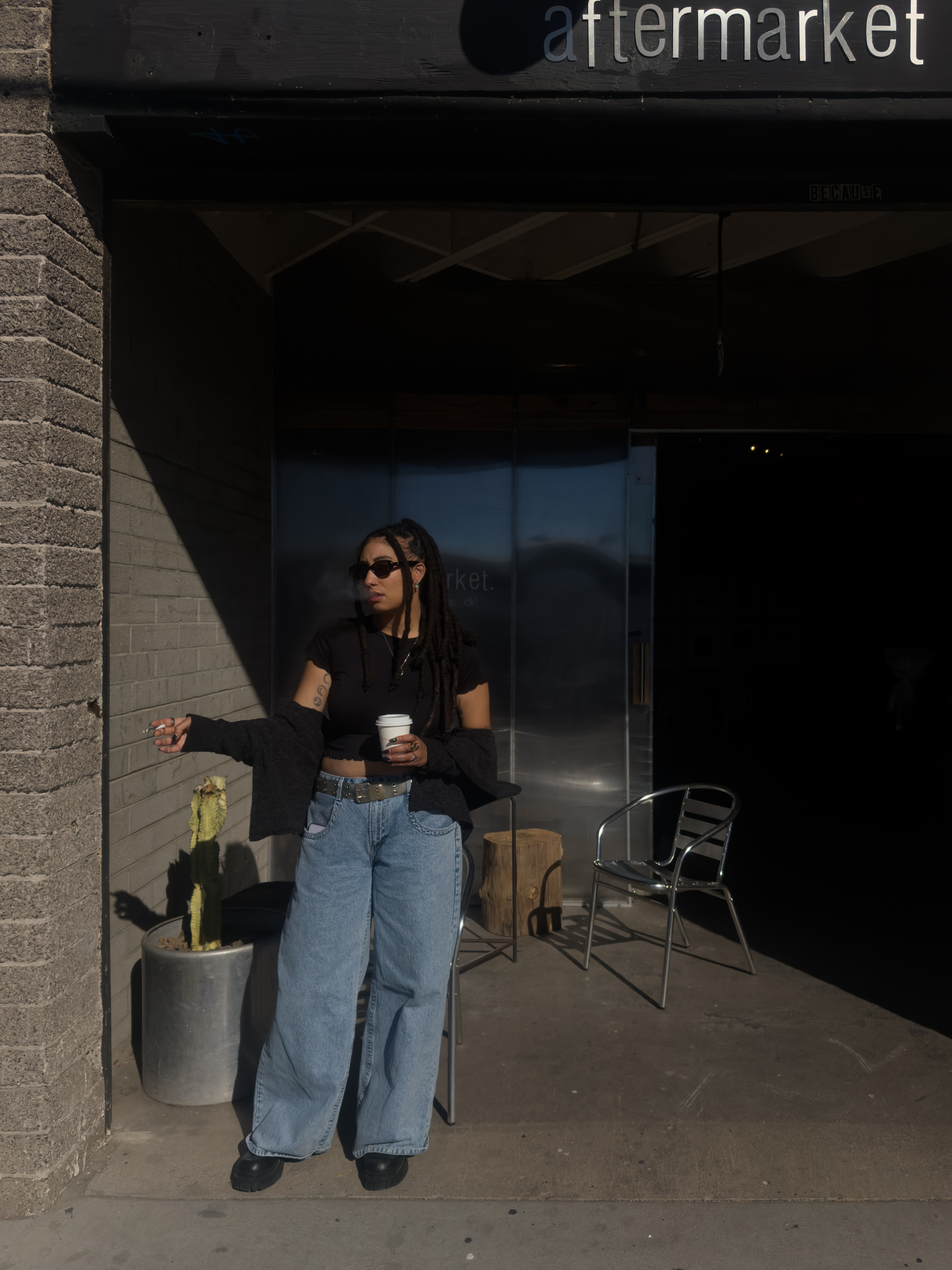 I wake up. I drive to Aftermarket. Gino calls and commends me for my honesty. Phil meets me at the coffee shop, I am 40 minutes late but he does not hold it against me. Danae shows me how to make a matcha, I struggle with steaming the milk. She tries on a belt we made at Ezra yesterday. I take a couple photos with the LX 100 II.