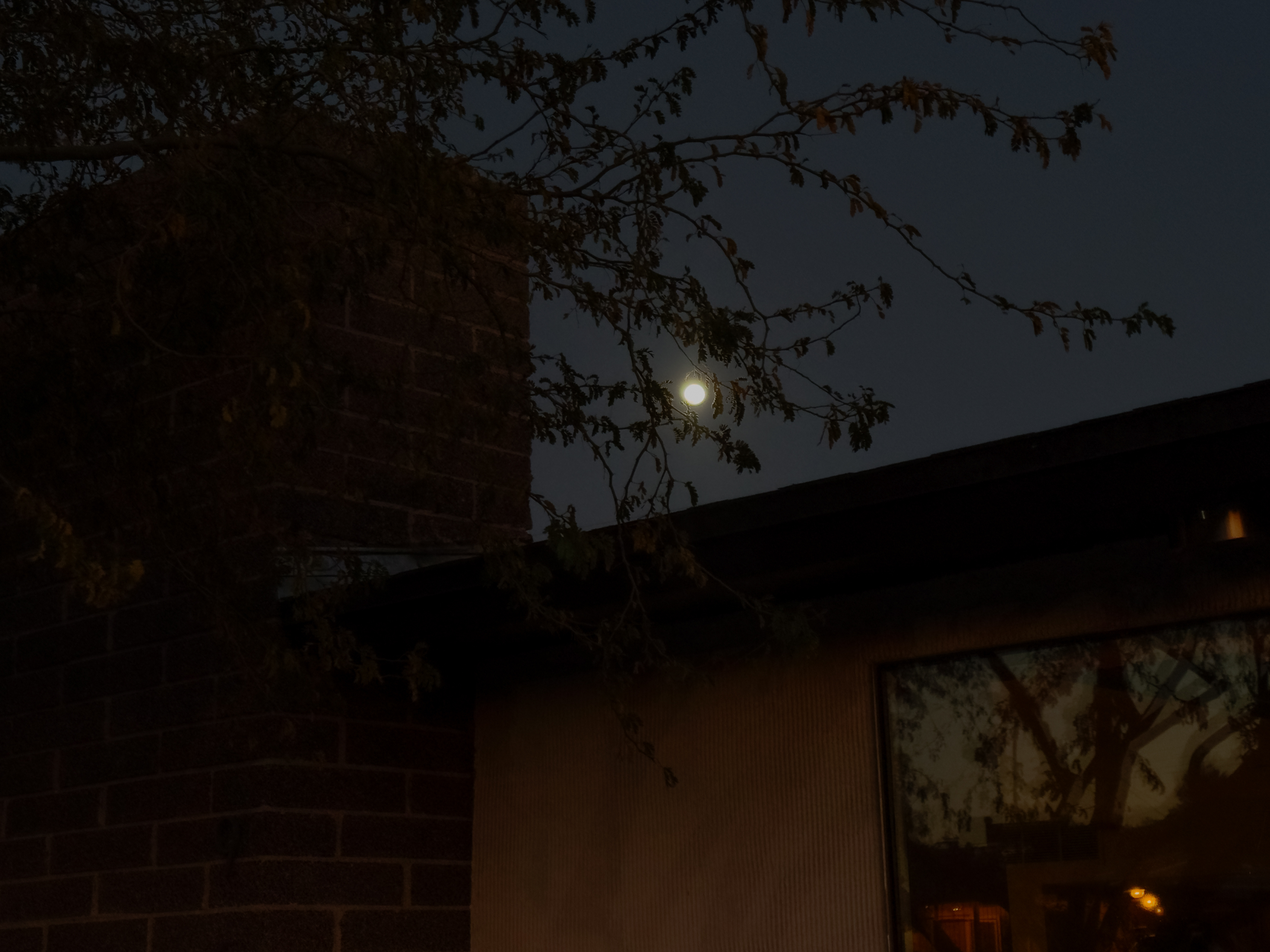 I leave the shop. I gaze at the moon in the reflection of the rear windshield. For years I have gazed, the moon gazes back. In an instant I pour out the depths of my heart. The moon listens well, it always does. I remember bargaining for a certainty it could not offer, hours before dawn in the middle of the Nevada desert. “The next time I see you like this, everything will be okay. Right?” Everything was okay, eventually. But not in the way I expected. Has anything changed?