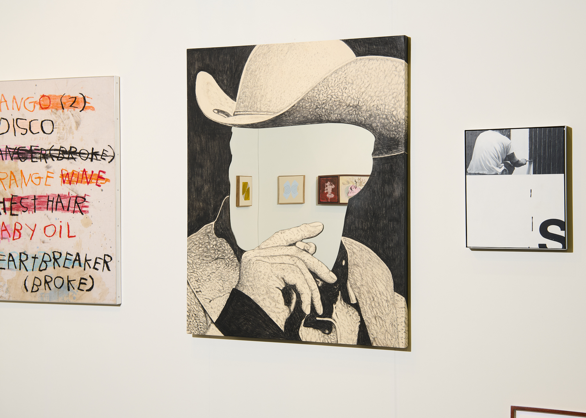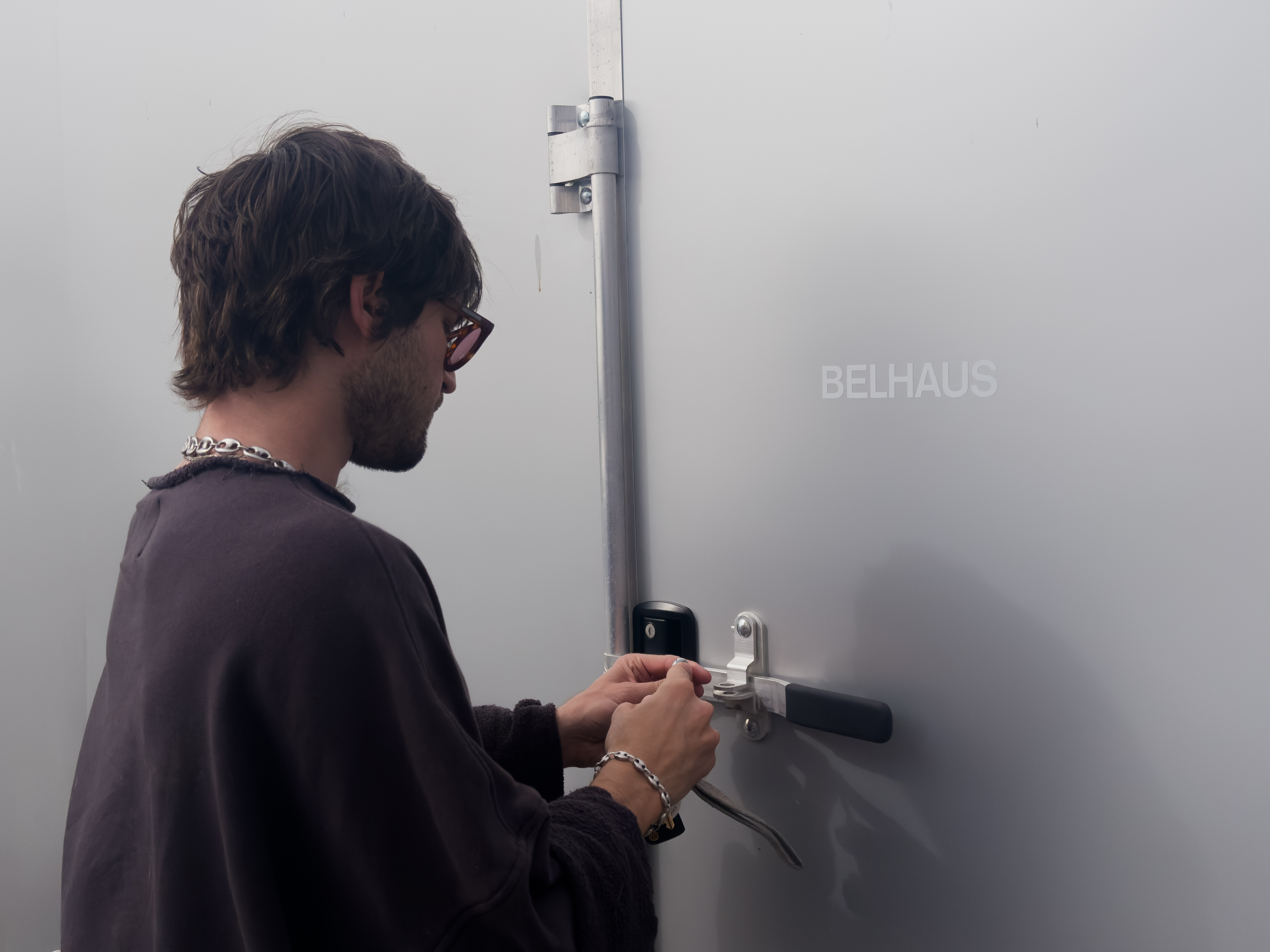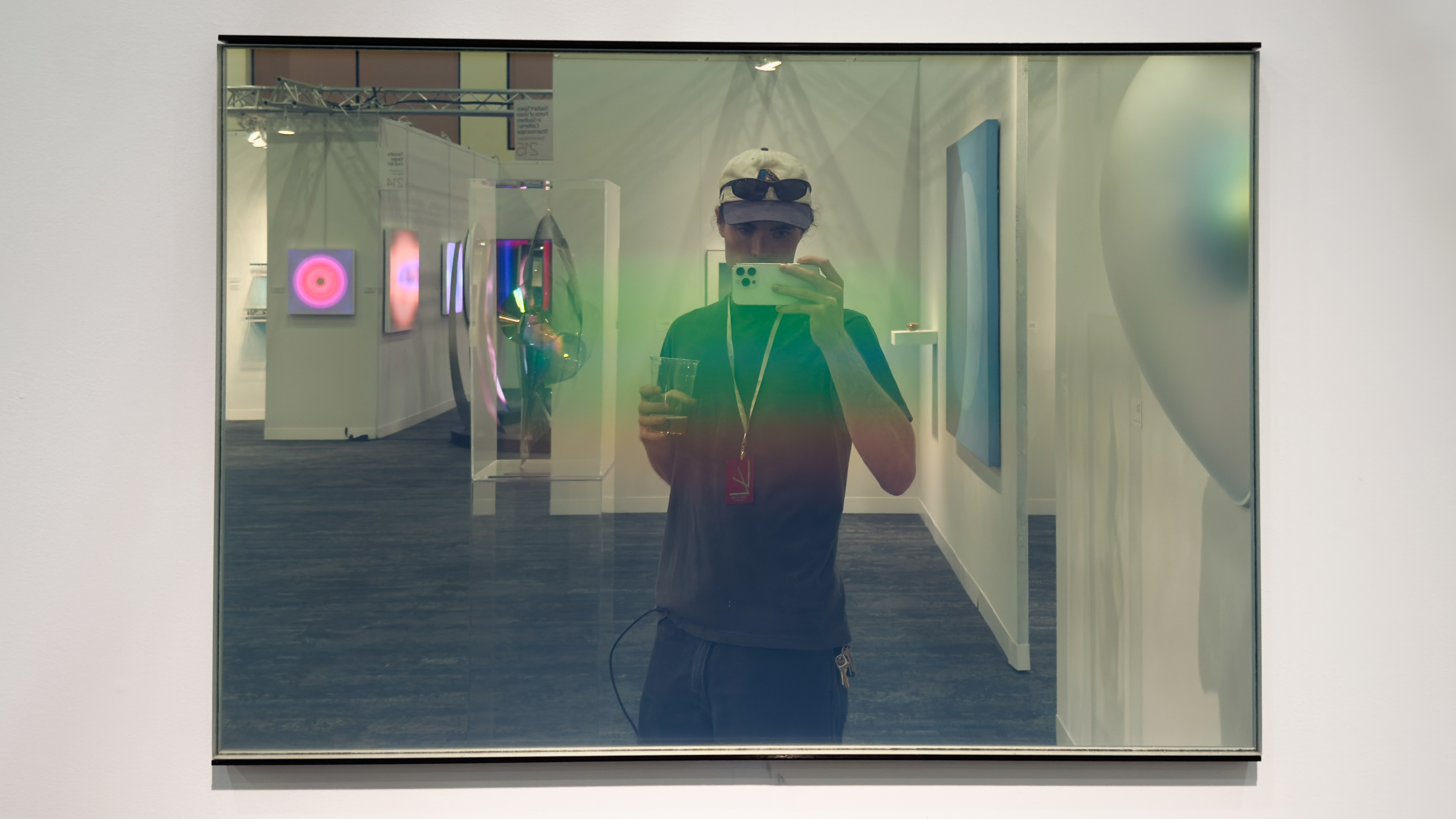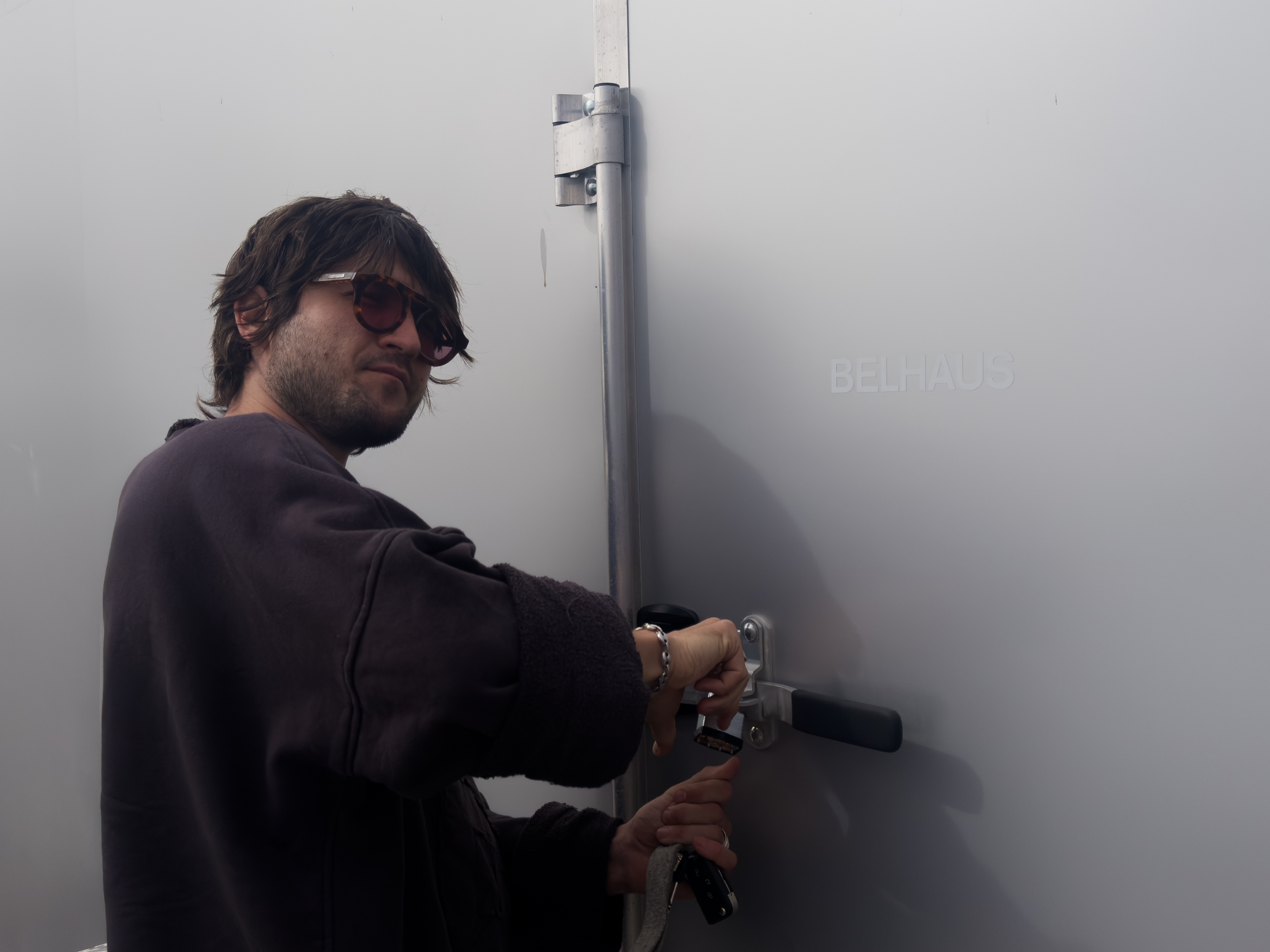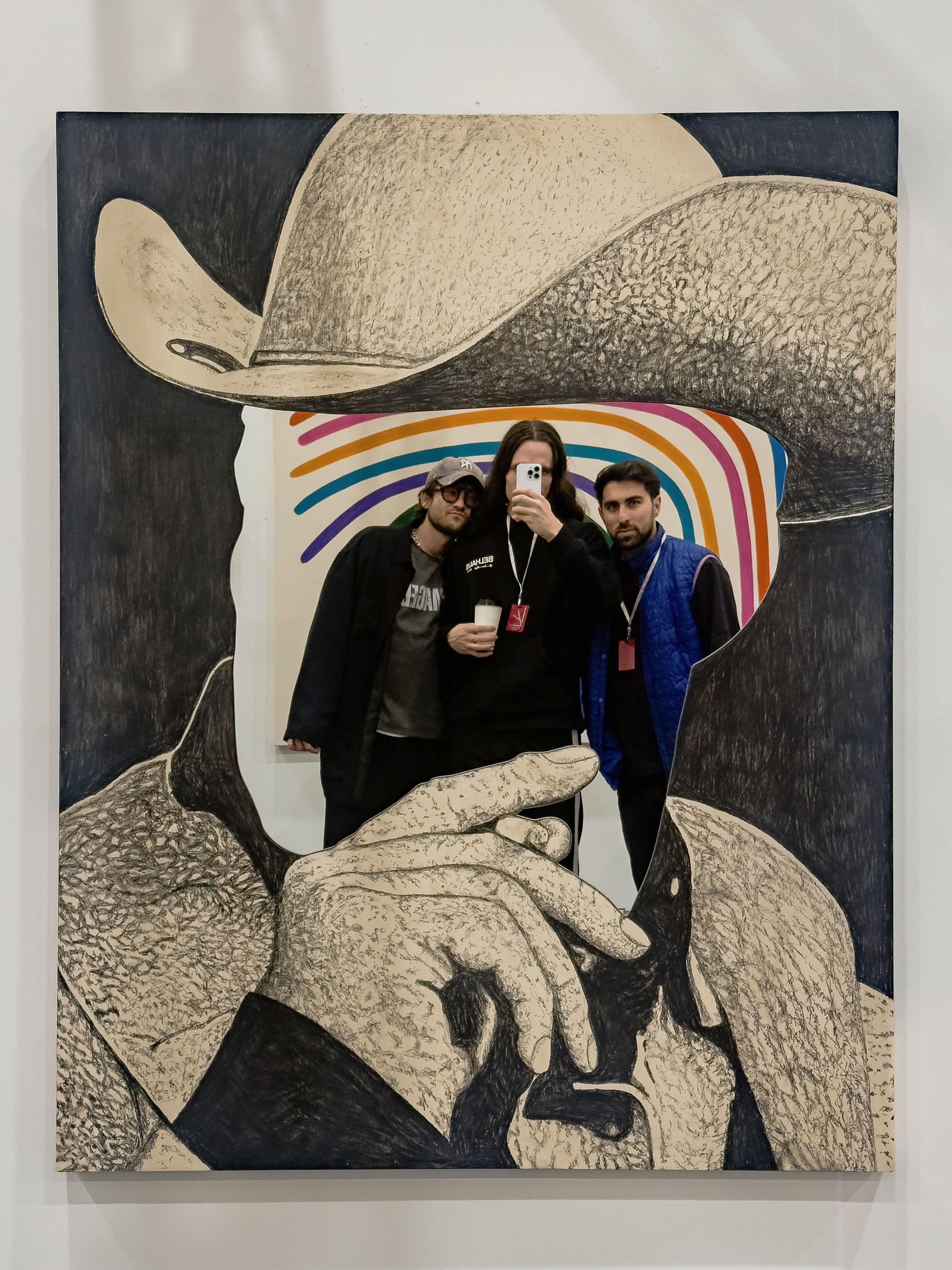 We almost finish setting up the Belhaus booth under the glare of vicious white LEDs. Daniel, Gino and I snap a selfie in the reflection of Davey Leavitt’s mirror cowboy.