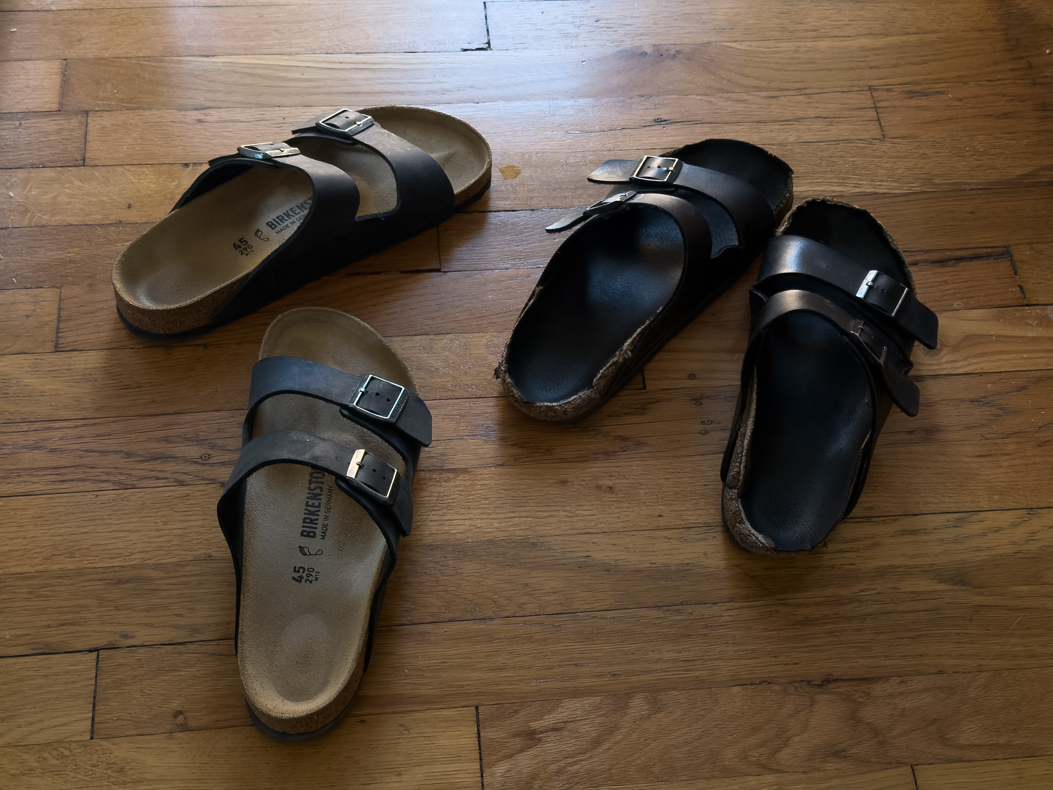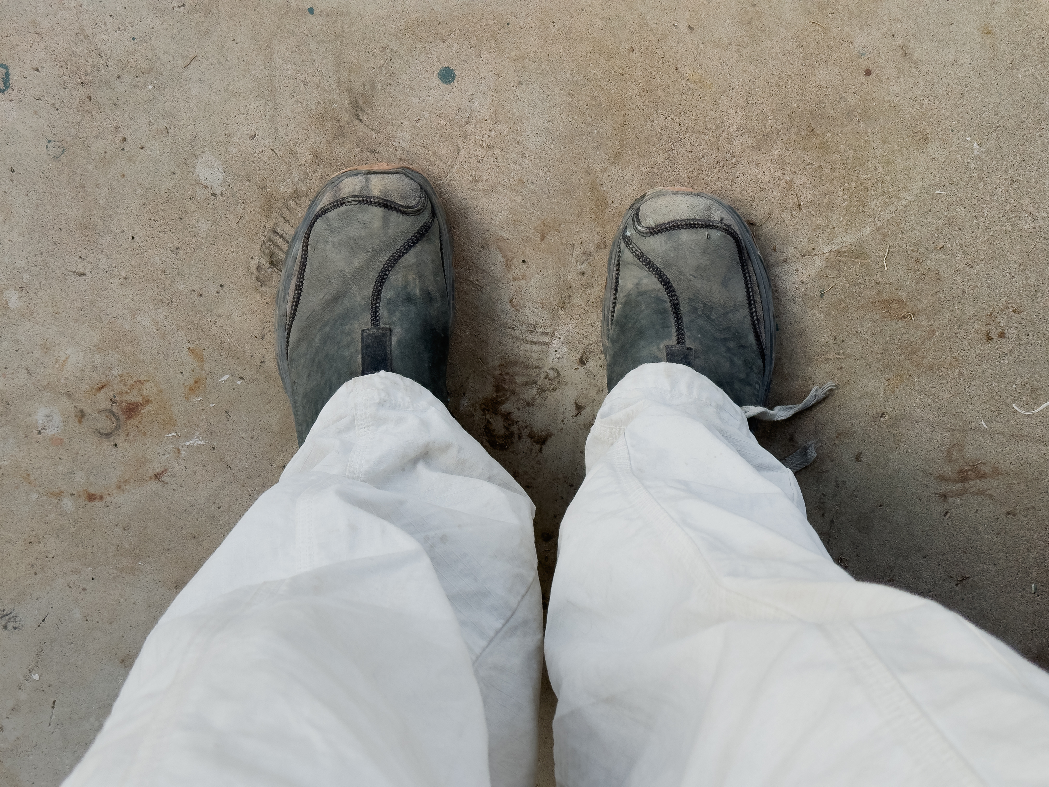 I work for a couple hours in Otto’s backyard demolishing the remainder of a concrete slab. I feel alive from the intensity of the physical labor. I love how the grey concrete dust stains these Salomon RX Slides. I look for another pair and discover they are rather expensive on GOAT.