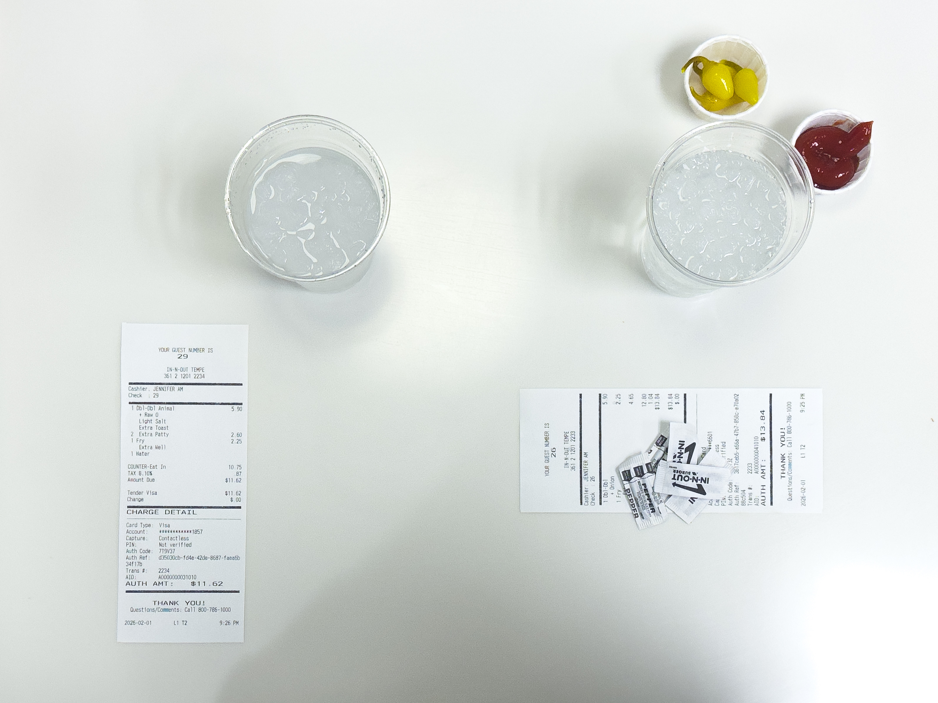 We play basketball. I play well, though I am especially tired from manual labor earlier. We are all improving significantly. After basketball, we go to In-N-Out. I order a 4x2 animal style with an extra toasted bun, light salt and raw onion added, and a fry extra well. We eat. I am rather quiet tonight.