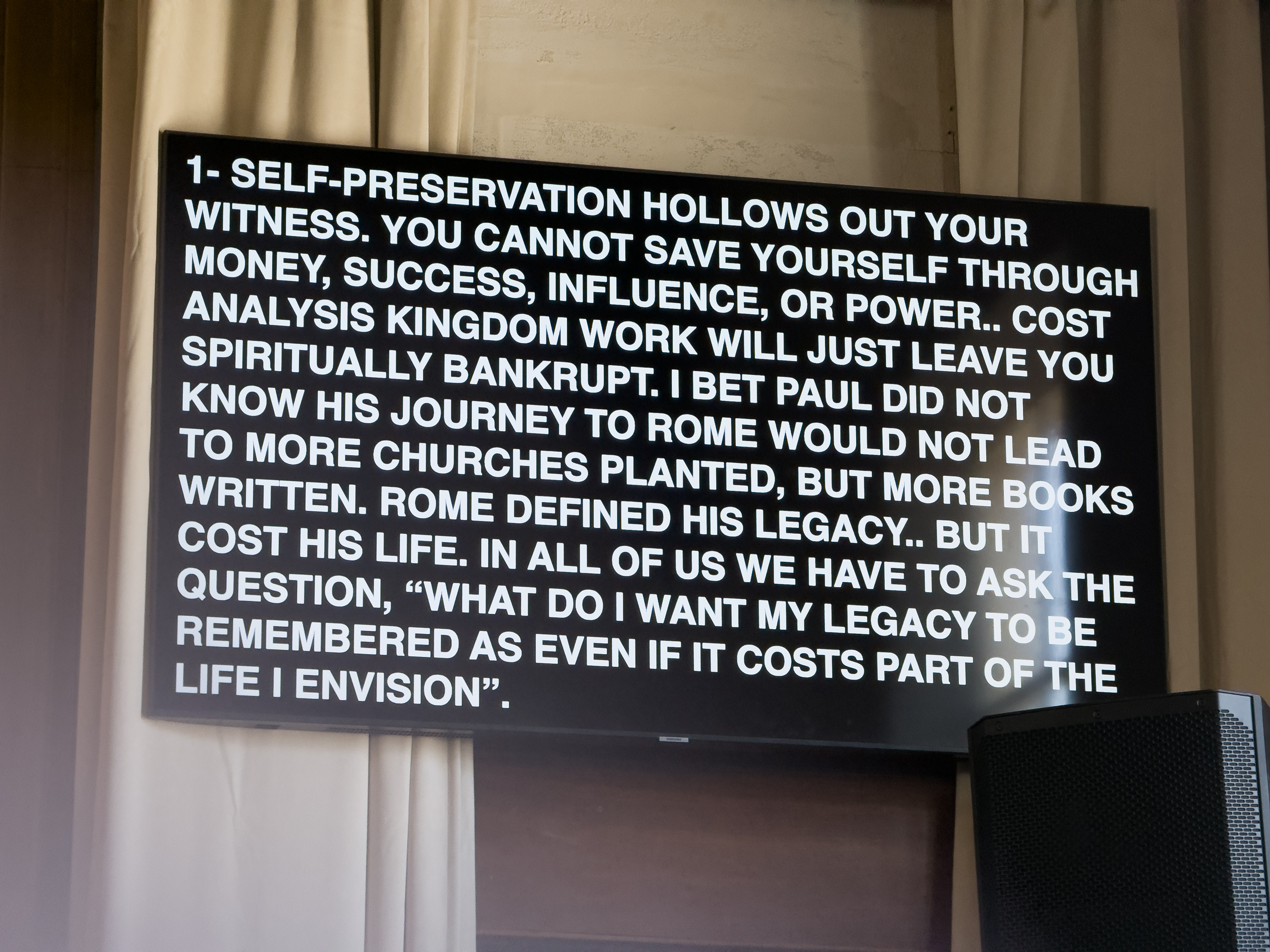 Micah speaks at Fixate. I realize I take notes just like my mom, who tagged along to meet him. She sits in the pew next to me, also typing on her phone. Hanna shows up late. I am glad she came. It is nice to have a friend at church who also exists in other social circles. Micah and my mom sit on the altar steps after service and share a short conversation. Then, her and I go to Aftermarket for a few drinks courtesy of Matteo.