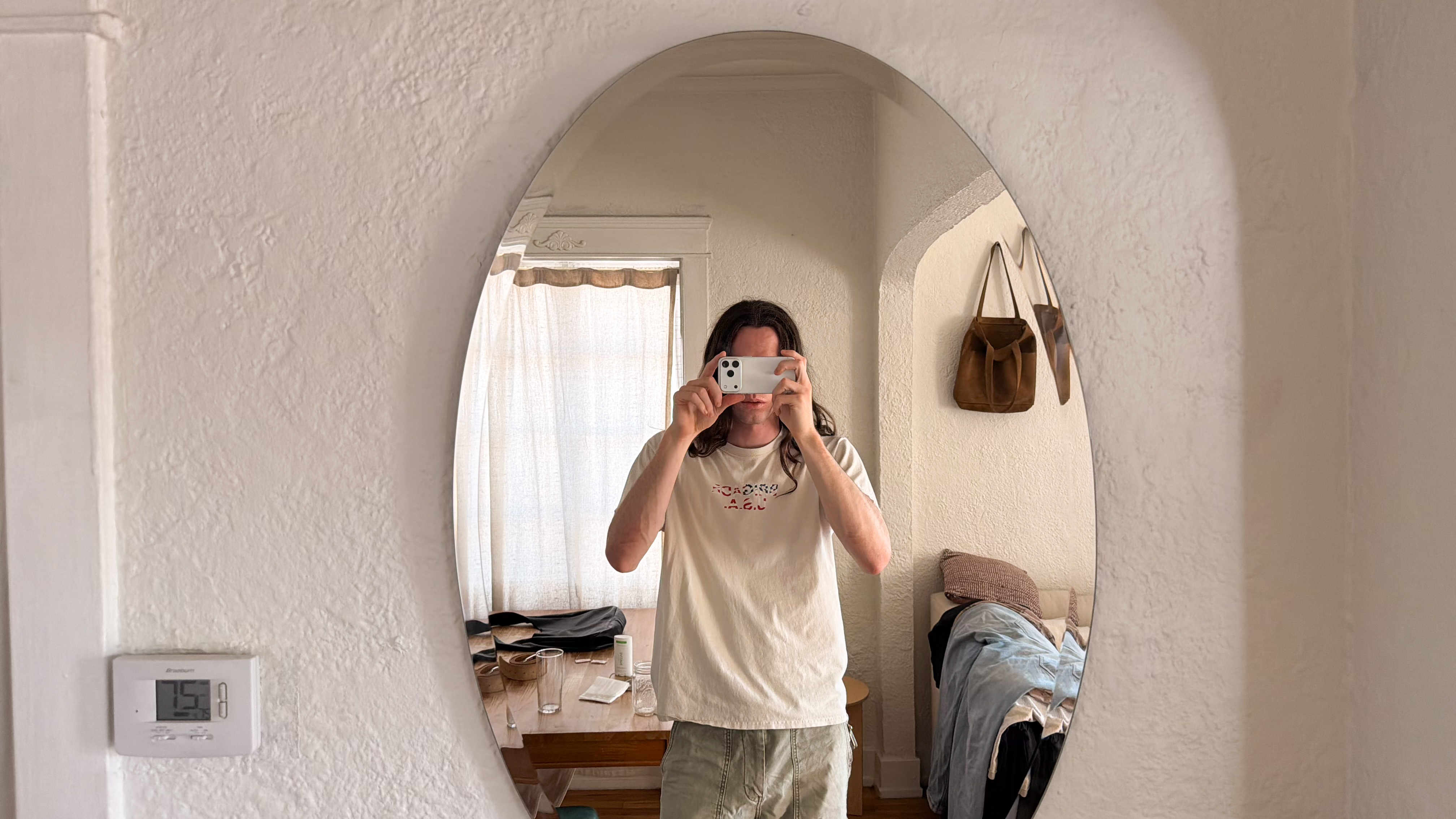 I shoot the first mirror selfie on my new iPhone 17 Pro.